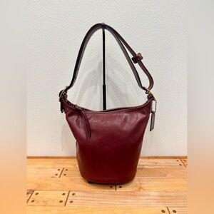 Coach Bleeker Bucket Bag In Burgundy with Tattersall Lining