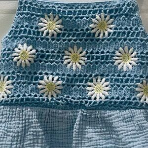 Excellent Condition! Charming blue crochet kids top and bottoms featuring delightful daisy accents. Perfect for a sunny day out.