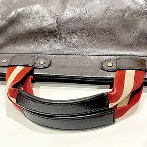 BALLY Brown Calfskin Tote Bag w Striped Top Handles and Adjustable Crossbody Striped Strap