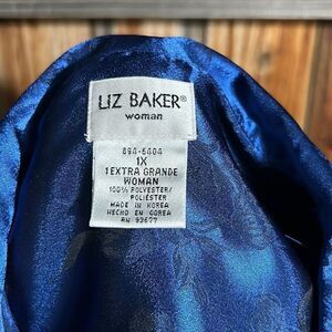 Liz Baker Woman blouse top tunic career blue floral plus 1X FIRm on PRICE