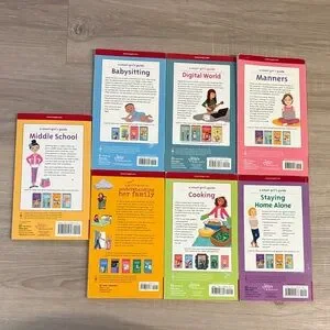 Collection of American Girl Smart Girl's Guide books. Topics include Babysitting, Digital World, Manners, Middle School, Understanding Family, Cooking, and Staying Home Alone. Though it is not an entirely complete set, it is definitely a great start as it contains 7 books in the series. There are two books with minor wear on the spines of the books. Wonderful books for girls coming of age.