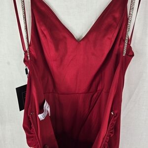 Ieena Mac Duggal Womens Size 2 Red Faux Wrap Stretchy Rhinestones Dress