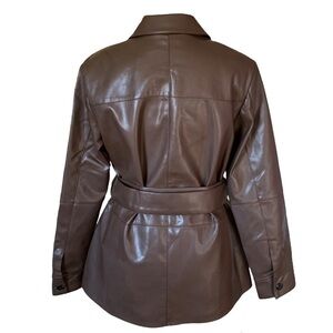 nwt Elie Tahari Faux Leather Jacket Belted Button Down Coat Brown Size Medium