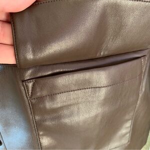 Casual vegan chic outdoor Spring Fall Autumn pumpkin season Quiet Luxury minimalist simple Americana business professional normcore Luxe Designer Baddie Rockstar Rocker Earthy Motorcycle Neutral Elie Tahari Belted Faux Leather Shirt Jacket Coat Chocolate Brown
