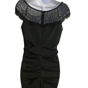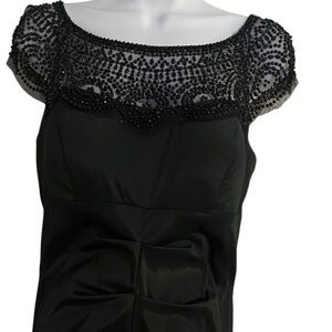 Xscape Black Beaded Cap Sleeve Formal Mermaid Dress