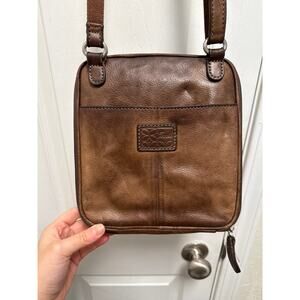 Vintage 90s Fossil Soft Brown Leather Square Crossbody Bag