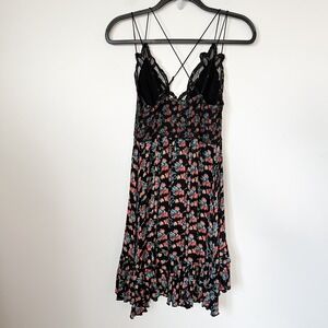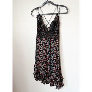 NWT Free People Adella Slip Mini Dress Floral Small Black