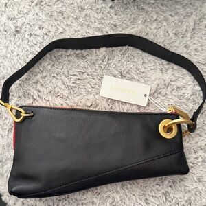 Hammitt Nash Pochette Black Clutch with Gold Accents Red Zipper NWT