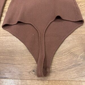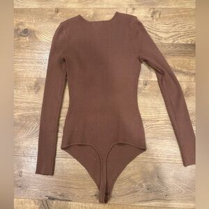 Nuuds Sweater Bodysuit Size Med Chocolate Brown Ribbed Stretchy