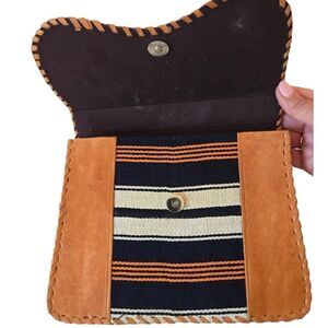 Sarep + Rose Womens Genuine Leather Handwoven Fabric Top Handle Handbag Brown