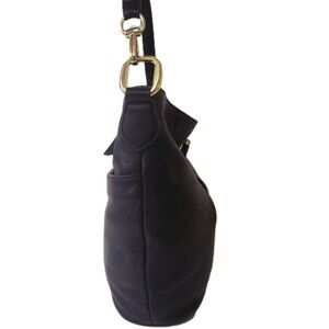 B. Makowsky Black Leather Crossbody Bag Gold Tone Hardware