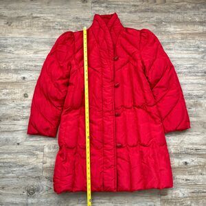 Down Vintage Jacket Red Puffer Long Trench Coat Winter 80s Unique Bright Large