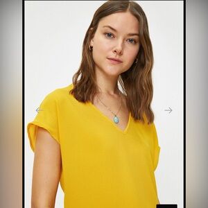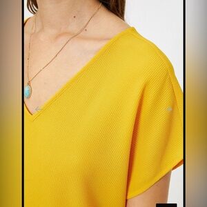 Brighten your wardrobe with this vibrant yellow V-neck top. Never worn. In brand new condition.
