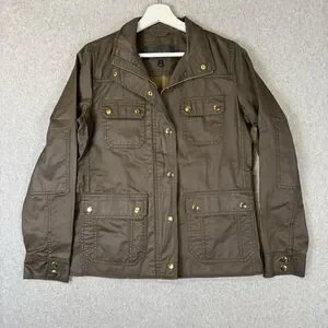 J Crew Womens Size Small Snap Front Utility Field Jacket Brown Pockets waxed Cotton