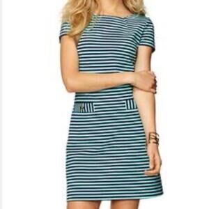 LILLY PULITZER | Navy Green Stripe Shift Dress Short Sleeve Short | Size Medium