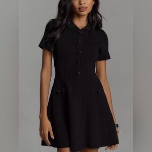 Chic and flattering Anthropology Endless Rose mini dress in classic black. Ribbed stretch fabric with a tailored silhouette and button-front detail. Sold-out style and brand new with tags.