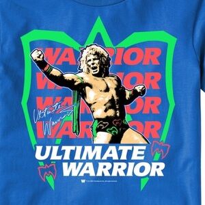 NEW Md WWE Men's Blue Ultimate Warrior Neon T-Shirt Signature Tee Wrestling WWF