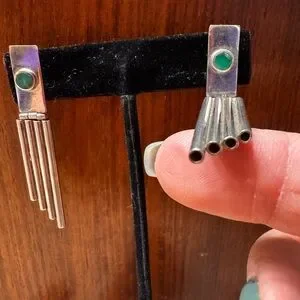 Vintage Sterling Silver With Green Stone Dangle Earrings