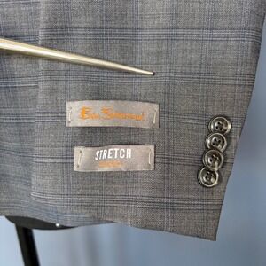Offered is a new men's Ben Sherman Bexley suit in dark gray Windowpane. New with original tags. Crafted from a wool-blend fabric with added stretch, this piece offers comfort while maintaining a sharp, tailored appearance.