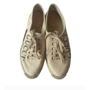 Gucci Cream Logo-Print Platform Espadrilles Flats