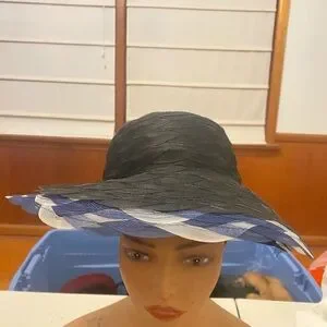 This chic women's hat features a stylish black and blue design, perfect for any occasion. Elevate your accessory collection with this fashionable piece.