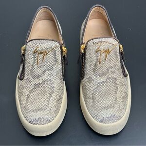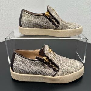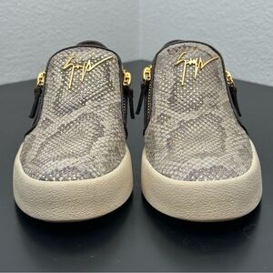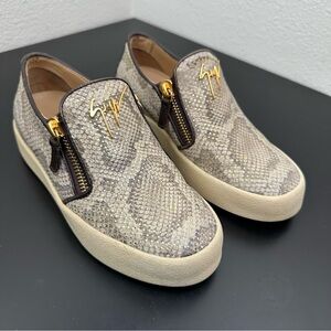 Giuseppe Zanotti Devon Skate Python Print Slip On Sneakers Gold Zip Womens 7.5