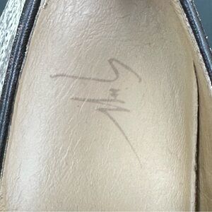 • Raised metal Giuseppe Zanotti logo — crisp font, deep gold tone, precisely attached
