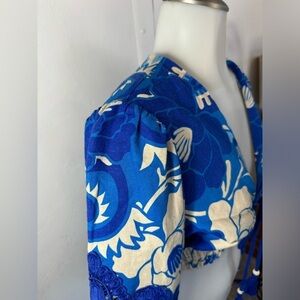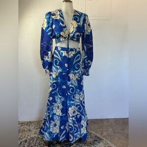 House of Harlow Long Sleeve Repeat Linen Top Tiered Skirt Set Matching flower