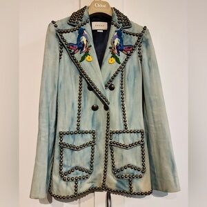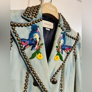 Gucci 38 XS - Like New - Fully Studded Parrot Embroidered Denim Blazer $4700