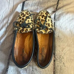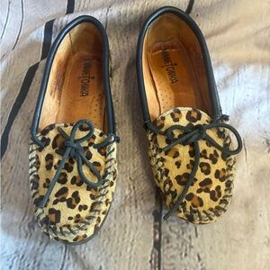 Minnetonka Women’s Authentic Cow Hair Leopard Print Moccasins Size 5.5 GUC