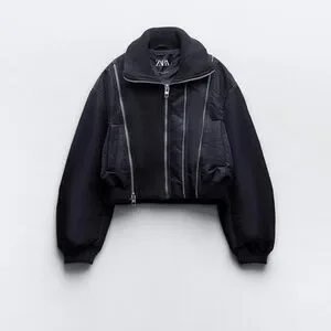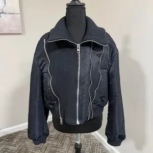 Zara Navy Zippered Pinstriped Bomber Jacket NWT