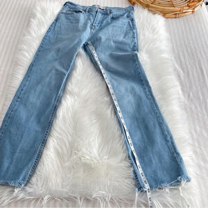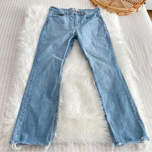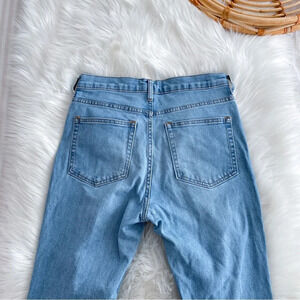 Everlane Straight Leg Denim Jeans Distressed Raw Hem Light Blue High Waisted