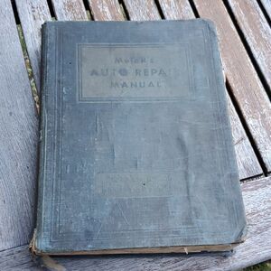 This is a 1935-1947 Motor's Auto Repair Manual. It was used and stored on an old timer mechanics property on rural Maui.