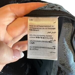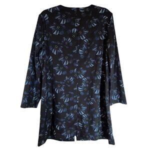 Alfani Black Navy Floral Longline Collarless Zip Front Jacket Large Work Career