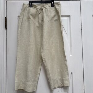 Garfield Marks 100% Linen Size 8 Natural Cropped Pants Drawstring Cropped