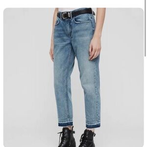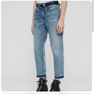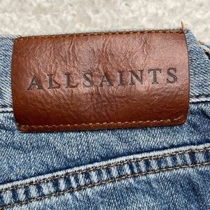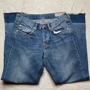 ALL SAINTS DENIM Boys Frayed Ty Jean in Mid Indigo size 25 Button Fly