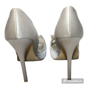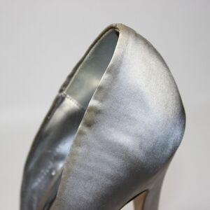 Feel beautiful and confident in the Audrey Brooke silver satin heels.