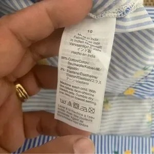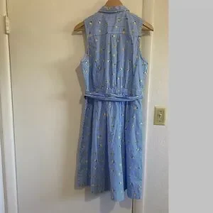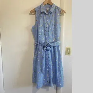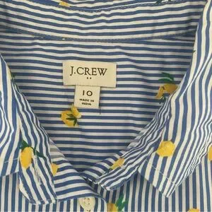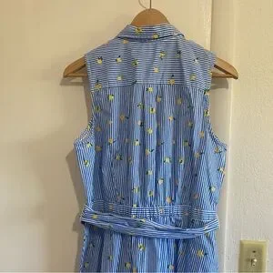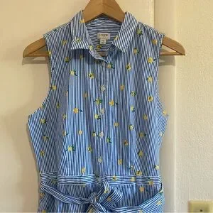 J.Crew Lemon Print Shirt Dress Blue Striped Sleeveless Belted Summer Size 10