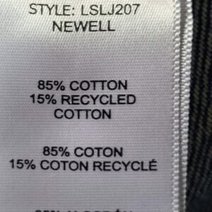 85% cotton, 15% recycled cotton (no stretch)