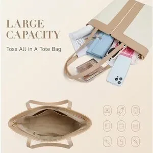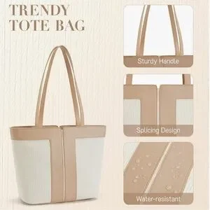This stylish shoulder bag/tote bag features a sophisticated tan and beige quilted and vegan leather design. It has a classic and versatile look that is perfect for everyday use or travel. Please note: the color way of this product is tan and beige. Comes nicely packaged (please see last two photos in product images).