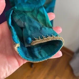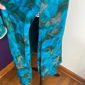 Such a pretty colored peace. Was given to me by a friend who wore once. No size or fabric tags on it. Its gorgeous. No marks that I can see.