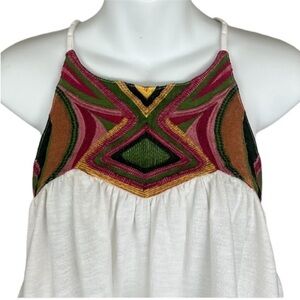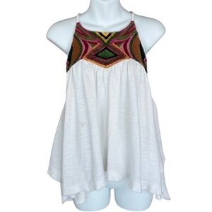 Free People Ivory Combo Embroidered Detail Beach Date Strappy Tank Top