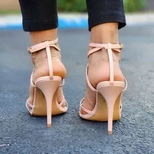 Nude Strappy Open Pointed Toe High Heels for Women Ankle Strap Adjustable Buckle