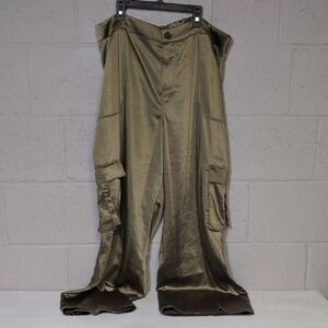 The Drop Women's Jessenia Shine Cargo Pants, Martini Olive, XXL, NWT, Chic