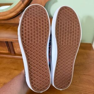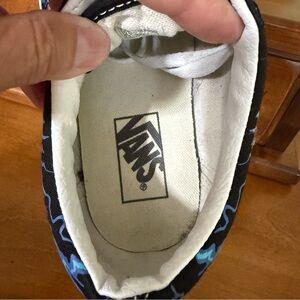 Black Vans sneakers with striking blue and orange lightning patterns. Eye-catching and bold design. Excellent condition size 10.