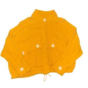 DÈLUC Yellow Button Up Crop Jacket XS Drawstring Lightweight Cotton Blend