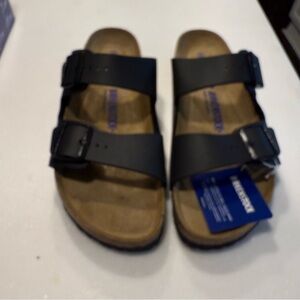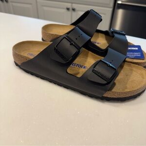 BRAND NEW in box. Unisex Birkenstock Arizona sandals in black. Soft footbed, adjustable straps. US Men’s size 10 Women’s 12 EU 43. Narrow width. MSRP $140