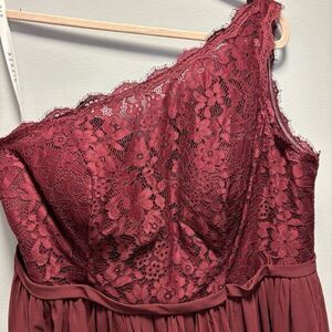 Azazie A20 1 Shoulder Maroon Lace Chiffon Bridesmaid Dress Pockets Slit Lined