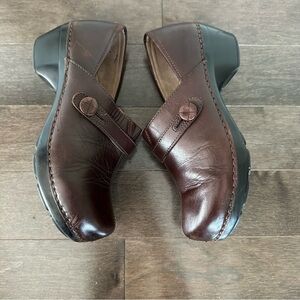 Dansko Solstice Brown Leather Split Toe Strap Clog Shoes