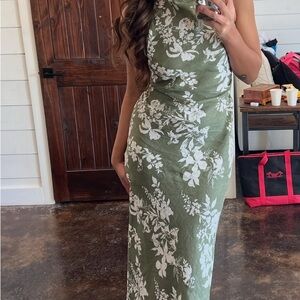 Reformation Green and White Floral Midi Dress